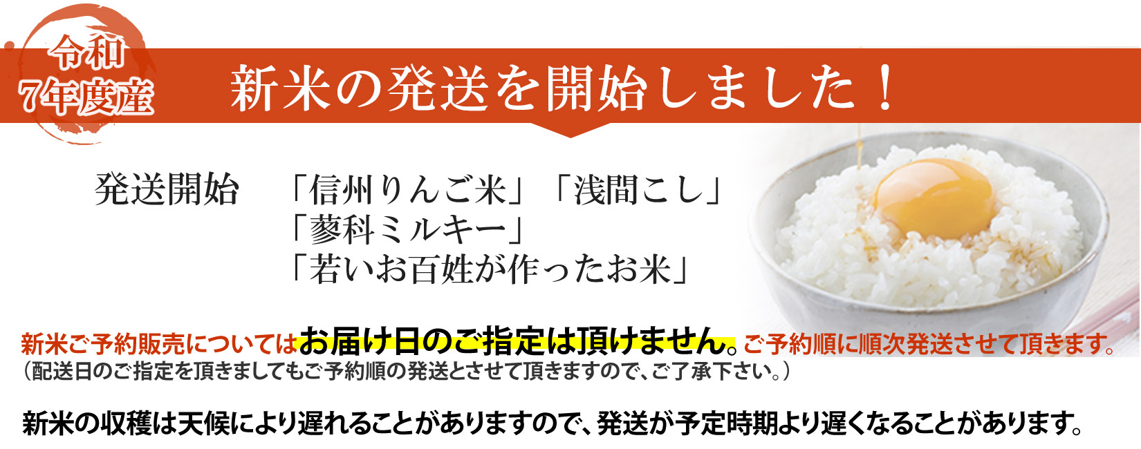 ※新米のご予約と同時にとその他商品をご一緒にご注文いただいた場合、ショッピングシステムの都合上、別途送料が加算される場合がございますので、ご了承下さい。